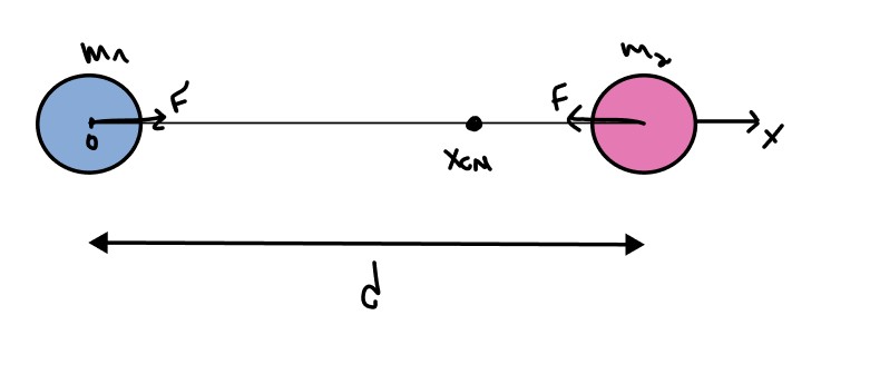 OBS: como o eixo de referência inicia-se sobre o centro de massa da estrela 1, a coordenada x deste é igual a zero, por isso foi cortado do cálculo.