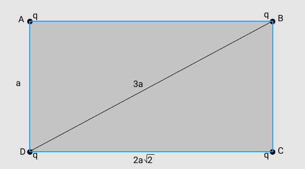 Assinale a alternativa que expressa o trabalho necessário para colocar cada uma de quatro cargas elétricas iguais, q, nos vértices de um retângulo de altura a e base , sendo k = 1/4π∈0, em que ∈0 é a permissividade elétrica do vácuo.
