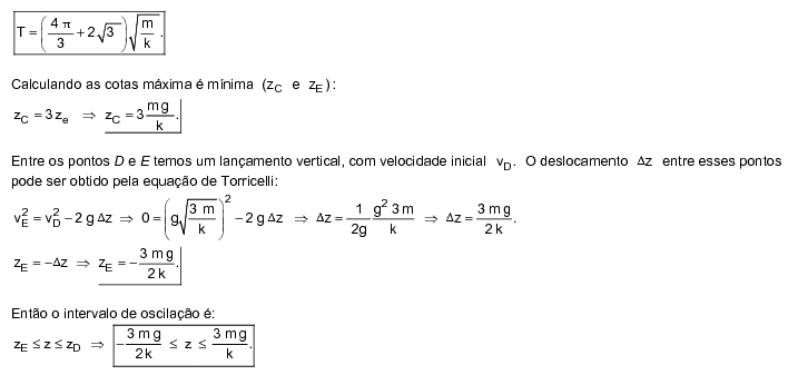 , e solta em seguida. Considerando nula a força da mola para z < 0, determine o período de oscilação da massa e os valores de z entre os quais a mesma oscila.
