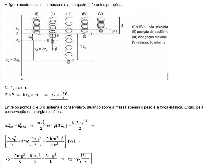(ITA – 2015) (2ª fase) Uma massa m suspensa por uma mola elástica hipotética, de constante de mola k e comprimento d, descreve um movimento oscilatório de frequência angular quando ela é deslocada para uma posição