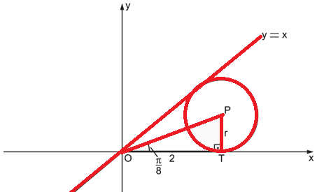 (ITA - 2015 - 1ª FASE) Considere uma circunferência C, no primeiro quadrante, tangente ao eixo Ox e à reta r : x - y = 0. Sabendo-se que a potência do ponto O = (0, 0) em relação a essa circunferência é igual a 4, então o centro e o raio de C são, respectivamente, iguais a