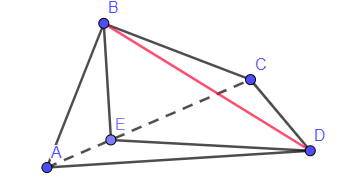 e seja a figura a seguir o tetraedro construído a partir dela, com altura BE em relação à aresta AC passando pelo ponto B: