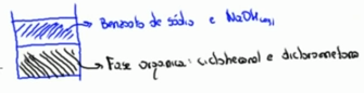 Fase orgânica, fase inferior: Ciclohexanol e dicloro metano.
