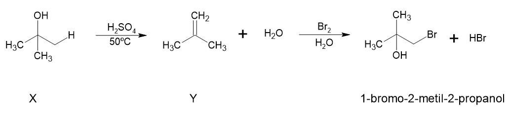Para formar o 1-bromo-2-metil-2-propanol a partir de uma reação de bromação utilizando água como solvente, o composto Y deve ser um alceno: