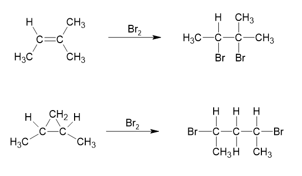 III. Incorreta. Em condições ambientes e na ausência de luz, apenas os isômeros insaturados e de cadeia fechada com três átomos de carbono são capazes de descolorir água de bromo, pois nestes casos ocorrem reações de adição.