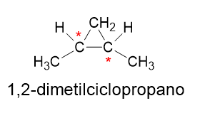 ll. Correta. O 1,2-dimetilciclopropano é um deles. Os carbonos quirais estão marcados com um asterisco vermelho: