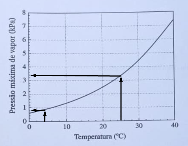 Assim, temos as pressões de vapor PV2 = 0,08kPa e PV1 = 1,7kPa, para o topo e para o solo respectivamente.