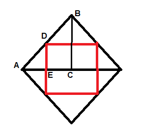 Queremos descobrir a medida DE que é metade do lado do quadrado.