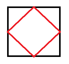 Agora vamos inscrever um novo octaedro dentro desse cubo de lado x. Novamente, vamos olhar a figura de perfil: