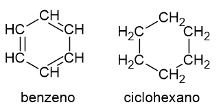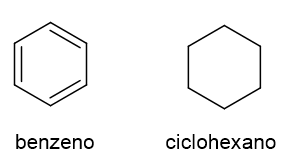 As estruturas do benzeno e do ciclohexano estão apresentadas a seguir: