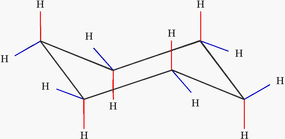 [D] Correta. O benzeno é plano e o ciclohexano se encontra, normalmente, na conformação cadeira representada abaixo: