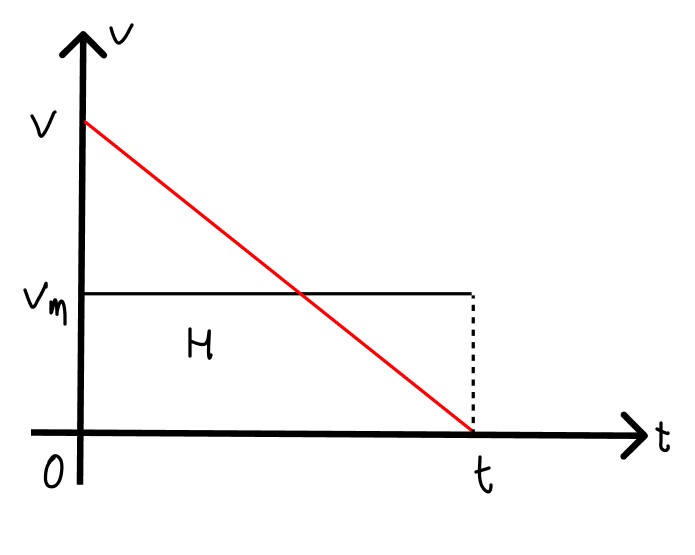 A área abaixo da reta vermelha é numericamente igual ao espaço percorrido, nesse caso, igual à altura H: