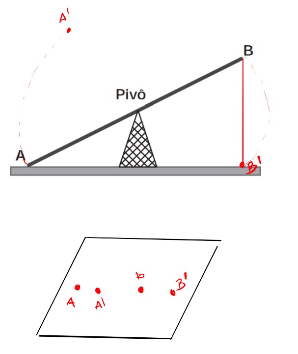 A projeção ortogonal da trajetória dos pontos A e B, sobre o plano do chão da gangorra, quando esta se encontra em movimento, é:
