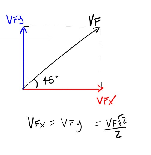 Analisando o vetor velocidade após a colisão, encontramos a seguinte configuração vetorial: