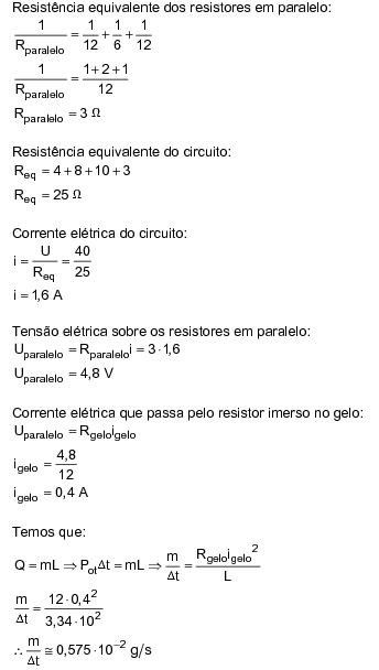 Propõe-se a realização de um experimento no qual um resistor de 12,0Ω está inserido dentro de um bloco de gelo a 0 ºC. O circuito montado está apresentado na figura abaixo.