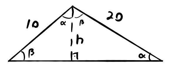 Ou seja, a área do triângulo com hipotenusa 10 é um quarto da área do triângulo com hipotenusa 20. Sendo A a área do triângulo com hipotenusa 10, o triângulo com hipotenusa 20 tem área 4A.