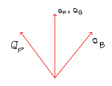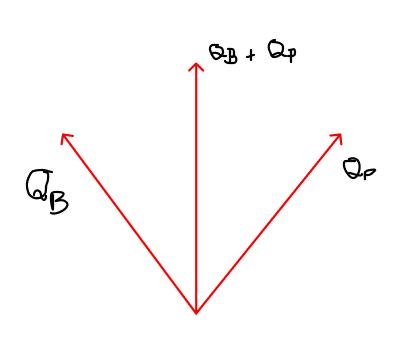 A soma vetorial dos momentos resultará em um vetor na vertical para cima. Temos pela conservação de momento que o momento antes da colisão deve ser igual o momento depois da colisão. Dessa maneira, a única alternativa que mostra isso é a alternativa D, veja: