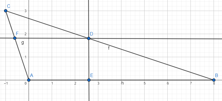 Sejam A = (0,0), B = (8,0) e C = (−1,3) os vértices de um triângulo e D = (u,v) um ponto do segmento . Sejam E o ponto de intersecção de