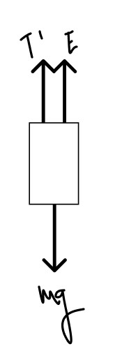 T' + E = mg ⇒ T' = mg – Vg