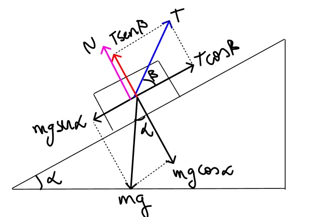 Diagrama de forças para o bloco no plano inclinado: