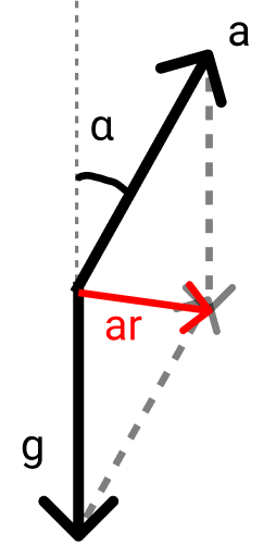 Um foguete desloca-se com aceleração constante a, que forma um ângulo com a vertical, como mostra a figura, em uma região cujo campo gravitacional local é