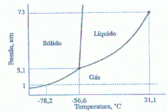 O diagrama de fases do dióxido de carbono é: