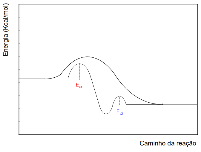 Esta mesma reação pode ser catalisada pelo NO2(g) em duas etapas, sendo que a primeira é bem mais lenta que a segunda. Numa mesma figura, esboce o perfil da curva da reação não-catalisada e da reação catalisada pelo NO2(g).