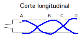 Considere o modelo de flauta simplificado mostrado na figura, aberta na sua extremidade D, dispondo de uma abertura em A (próxima à boca), um orifício em B e outro em C. Sendo = 34,00 cm,