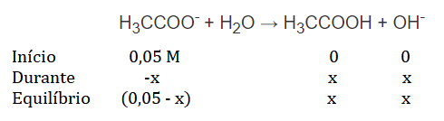 Sendo o ácido acético um ácido fraco, o H3CCOONa irá sofre hidrólise segundo a reação: