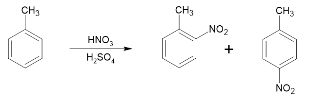 Incorreto. O grupo metila é orto-para dirigente, então os produtos formados são o-nitrotolueno e p-nitrotolueno: