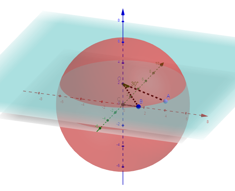 Onde C é o centro da esfera, O o centro da circunferência determinada pela interseção do plano com a esfera