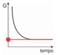 Considere a reação química hipotética realizada em sistema fechado a pressão e temperatura constantes representada pela equação . Supondo que no início da reação haja apenas os reagentes X e Y, e considerando um intervalo de tempo que se estende de t = 0 até um instante t após o equilíbrio ter sido atingido, assinale a opção que apresenta a variação da energia livre de Gibbs.