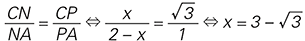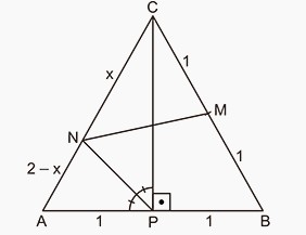 Podemos pensar o seguinte triângulo equilátero com altura ar{CP}, lado 2 e com a seguinte bissetriz interna: