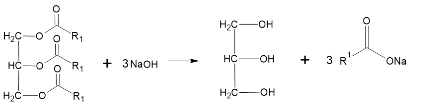 c) Se a reação ocorre envolvendo uma solução básica de NaOH, teremos a formação de um sal de ácido carboxílico. Essa é a reação de saponificação (formação de sabão):