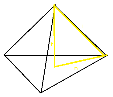 Agora para achar o valor da altura do tetraedro, basta aplicar pitágora no triângulo em amarelo, ficando: